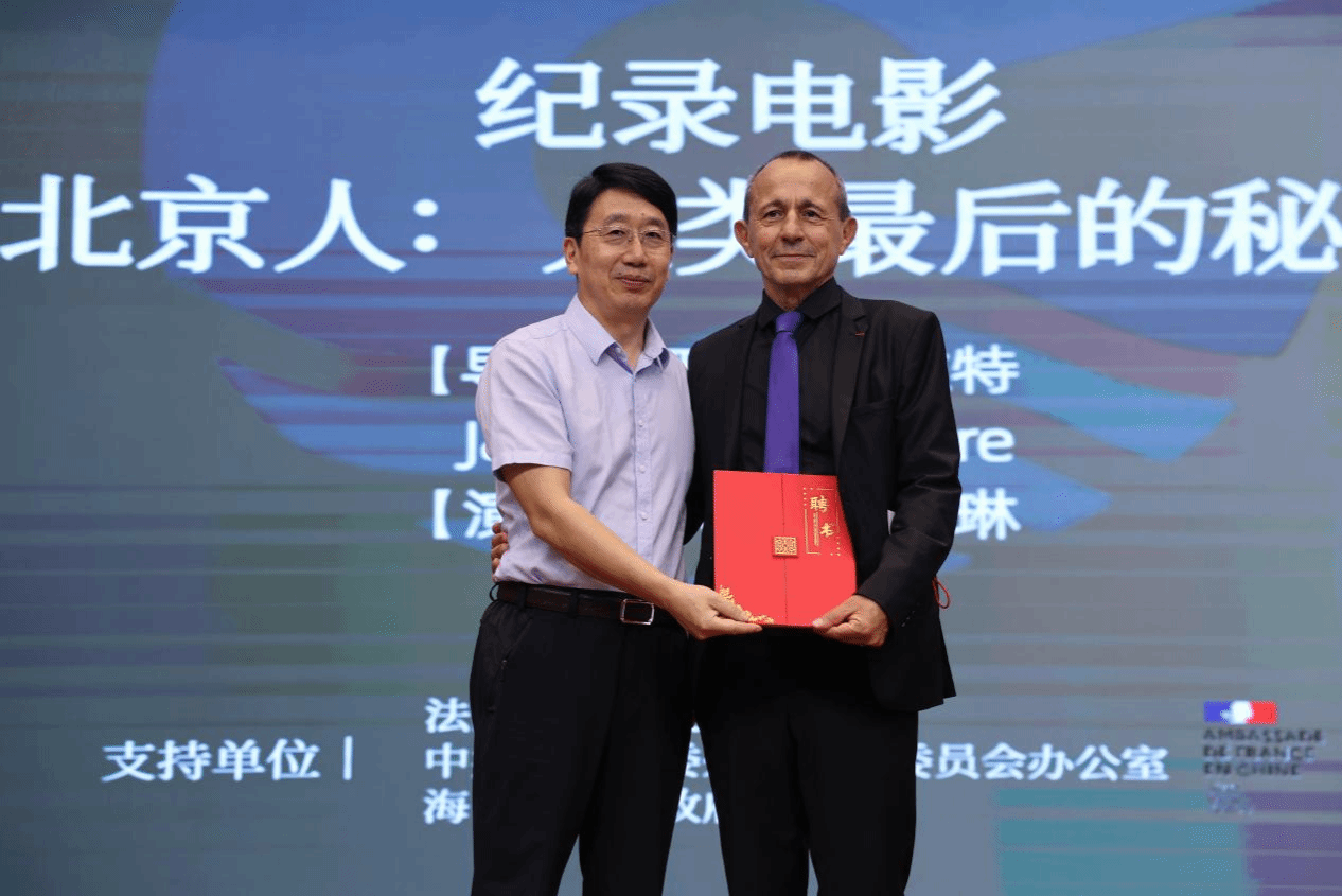2024年10月23日下午,中法合拍纪录电影《北京人:人类最后的秘密》展映会在bv伟德中国官方网站田家炳楼二楼报告厅举办。影片导演雅克·马拉特(Jacques Malaterre)和bv伟德中国官方网站员工、主演龚梦琳,公司经理郑立波、党委书记何映敏、党委副书记蒋锐等出席活动。活动由戏剧影视文学专业杨扬老师主持。