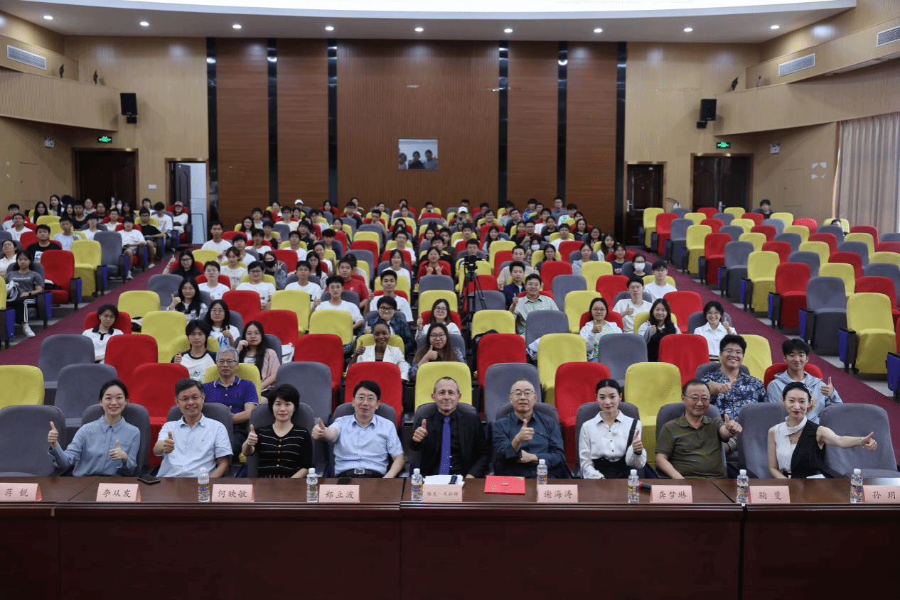 导演雅克·马拉特针对同学们的提问进行细心解答。马拉特说,为了增加电影的真实性,影片中所呈现的北京人进化过程也是根据科学家的研究尽可能还原的,创作过程追求严谨与科学。