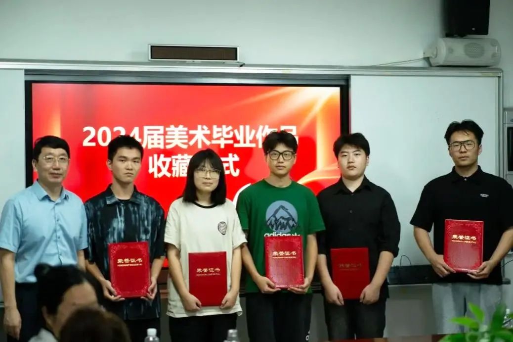 郑立波经理、袁琳副经理给同学们颁发了收藏证书,绘画专业副教授元志东主持活动,近40位师生参加收藏仪式。