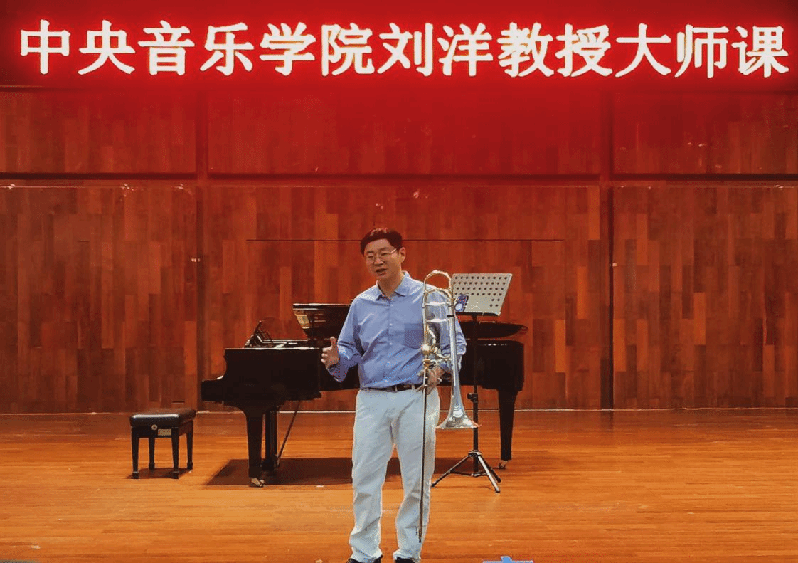 大师课上,刘洋教授带领同学们进行气息训练,用心传授吹奏技巧。期间,他对公司学子的专业水平给予了高度评价。凭借丰富的演奏经验和深厚的专业素养,刘洋教授为参加本次讲座的师生们带来了一场号声跃动的知识盛宴。