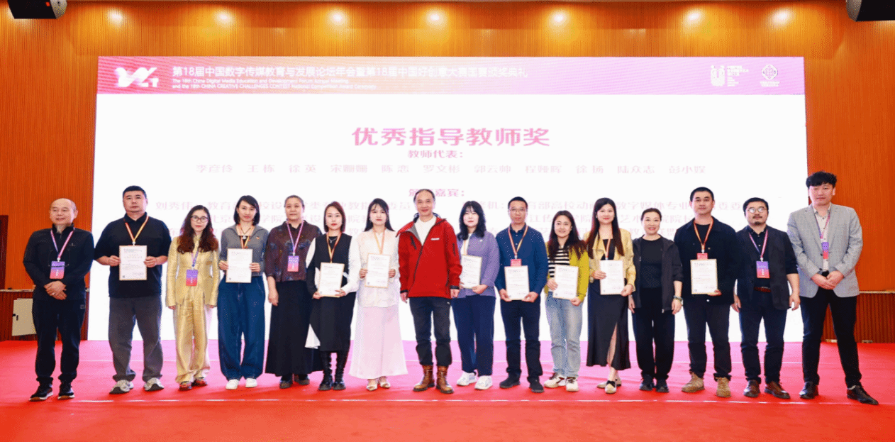 2024年11月1日—3日,第18届中国数字传媒教育与发展论坛年会暨第18届中国好创意暨全国数字艺术设计大赛国赛颁奖典礼在桂林隆重举行。公司获奖师生代表唐丽春教授、邓晰副教授、徐扬副教授、裴彦西、徐蓉蓉同学参加了本次颁奖典礼。