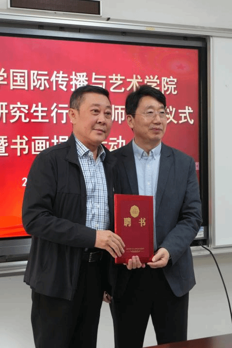 郑立波经理向省文联副主席、省美协主席阮江华颁发导师聘书