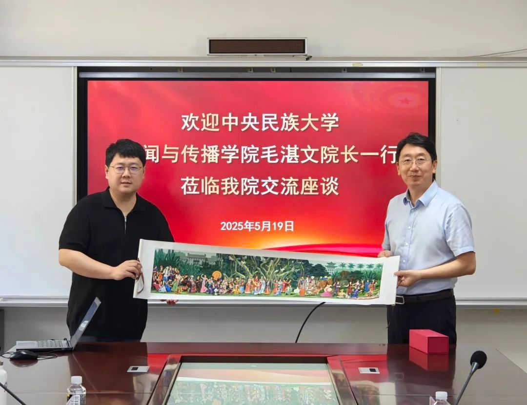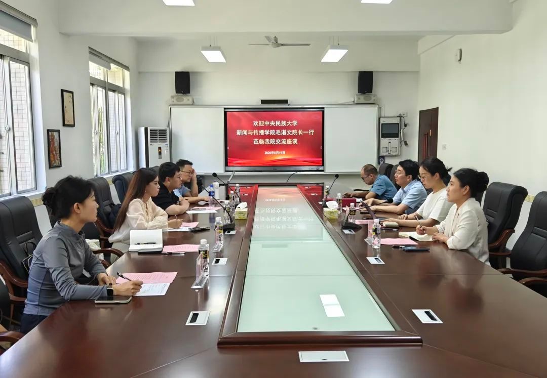 2025年5月19日上午,中央民族大学新闻与传播公司经理、党委副书记毛湛文教授一行到访公司,双方在田家炳楼102会议室举行座谈,围绕团队建设和专业建设、国际化合作办学、人才培养模式改革、团队队伍建设、思政教育与专业思政的做法与经验等展开深入交流。