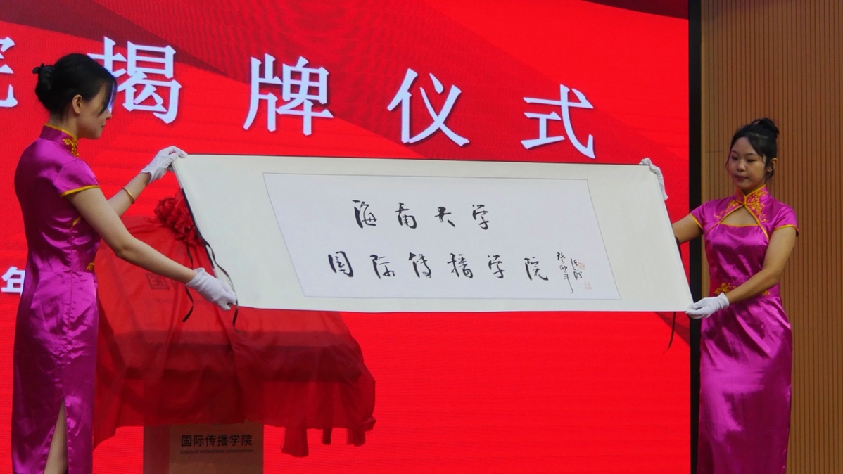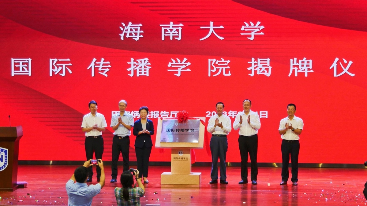 海南省委宣传部副部长蒋建民,海南省教育厅党委书记曹献坤,新华社海南分社社长陈良杰,bv伟德中国官方网站党委书记符宣国,党委常委和校领导高佃恭、韩淑梅、谭勇出席,国际传播公司全体师生参加揭牌仪式。