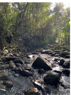 接下来师生团队到达万泉河源头以及石臼河道,并开展实景写生,用画笔描绘热带雨林的风貌和黎母山镇独特的自然景观。