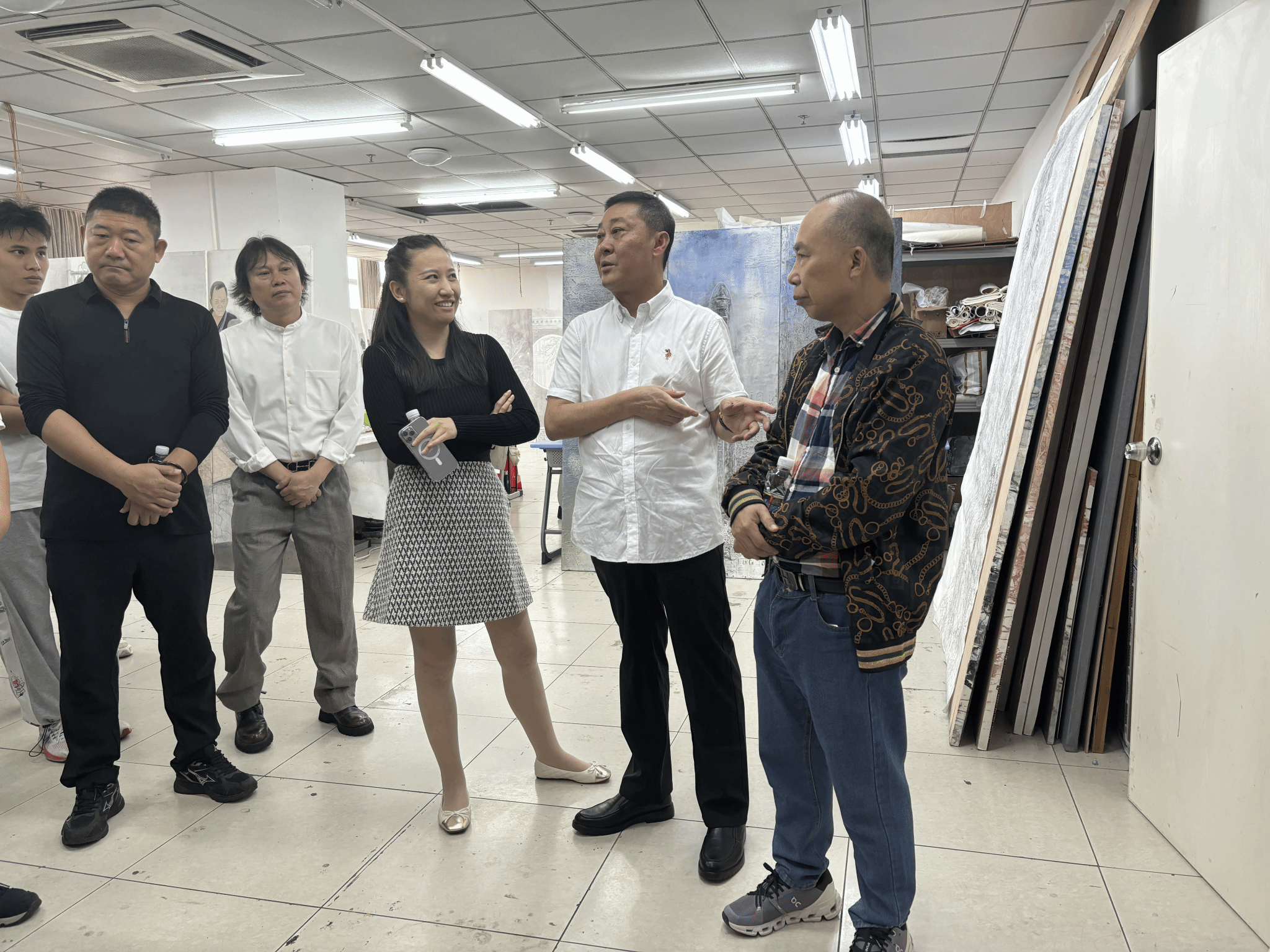 3月18日上午,bv伟德举办举行“十四届全国美展”作品观摩会,特邀中国美术家协会理事、海南省文联副主席、省美术家协会主席阮江华,海南省美术家协会顾问兼理论委员会主任王家儒,海南省美术家协会顾问丁孟芳,海南省美术家协会顾问齐英石,海南省美术家协会顾问周建宏,海南省美术家协会副主席郭红雨等观摩指导,公司经理郑立波、副经理袁琳,海南省美术家协会副主席、bv伟德教授林明俊,海南省美协副秘书长、国画艺委会副主任兼秘书长梁增权陪同调研。