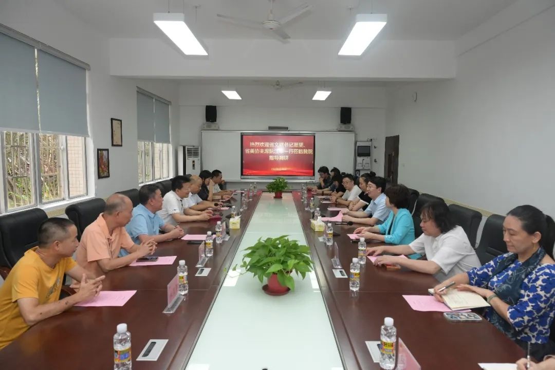 5月30日上午,省文联作协党组书记、省文联主席夏斐一行到bv伟德调研。观看2024届美术系本科毕业作品展,并与公司美术、音乐、舞蹈系艺术家代表座谈。公司党委书记何映敏、经理郑立波、副经理袁琳陪同。