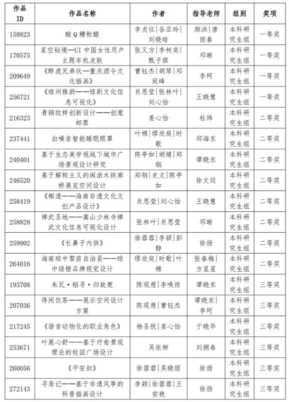 海南分赛区获奖作品名单(非命题赛场)