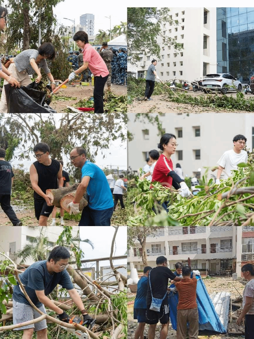 本站讯(通讯员 李政)今年第11号超强台风“摩羯”正面袭击我省,造成严重灾害,海大校园也受到了重创,尤其是基础设施受灾严重,房屋受损、树木倒伏,道路瘫痪。国际传播与艺术公司党委积极响应公司党委号召,第一时间组织党员先锋队,带领公司教职员工志愿者及员工志愿者开展灾后重建工作,清理田家炳楼、艺术大楼及周边,为共“净”校园,全力以“复”。
