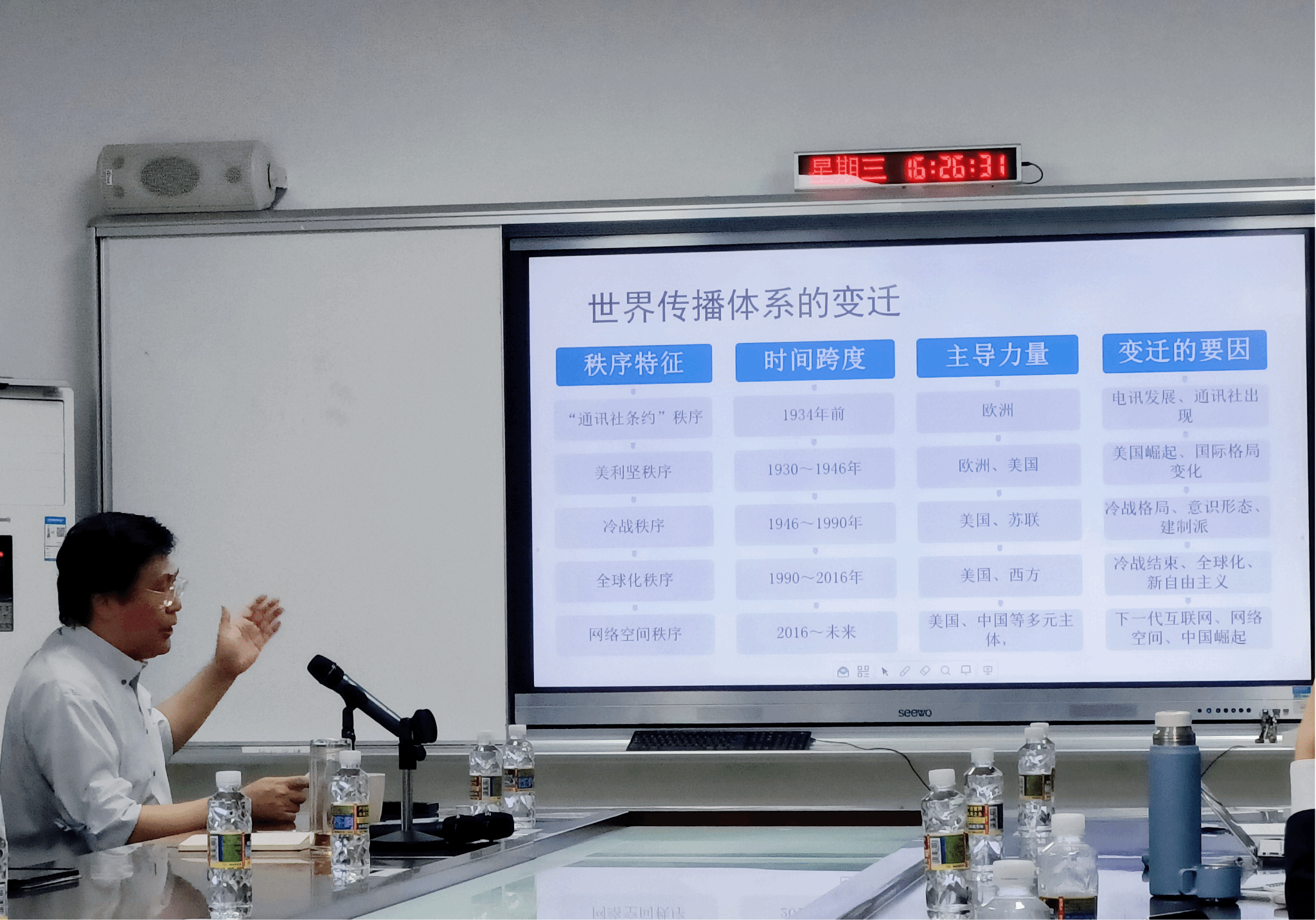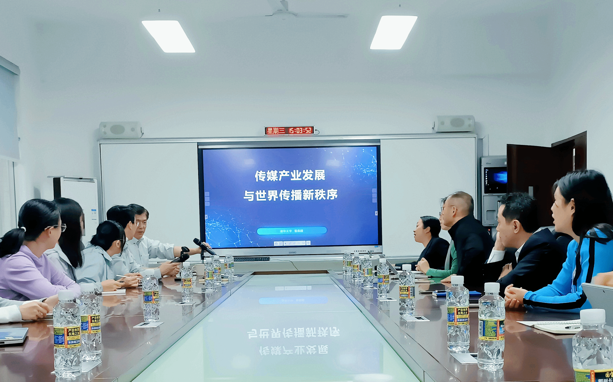2023年12月6日下午,由bv伟德中国官方网站人文社科处主办,bv伟德中国官方网站文化旅游协同创新中心与国际传播公司协办的bv伟德中国官方网站自贸港大讲坛第19讲暨国际传播公司“思﹒响”讲坛第6期在田家炳楼102会议室成功举行。清华大学新闻与传播公司教授、博导、清华大学传媒经济与管理研究中心主任、清华-日经传媒研究所所长崔保国主讲《传媒产业发展与世界传播新秩序》,国际传播公司经理郑立波教授主持。