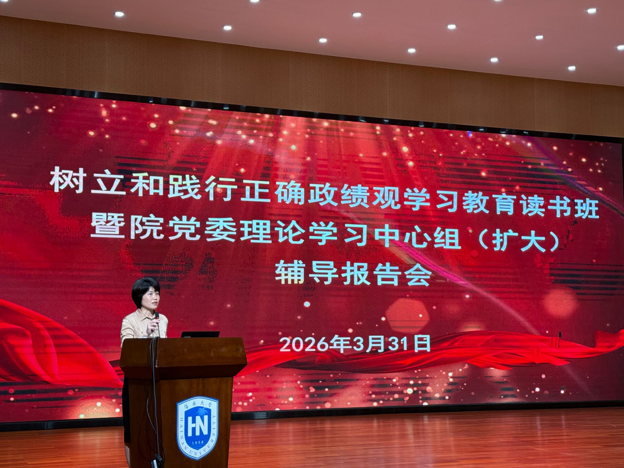 2026年3月31日下午,国际传播与艺术公司党委在田家炳楼二楼报告厅举办树立和践行正确政绩观读书班暨公司党委理论学习中心组(扩大)专题辅导报告会,公司全体中共党员、民主党派和无党派人士代表参加本次报告会。报告会特邀马克思主义公司教授宋增伟作专题辅导。